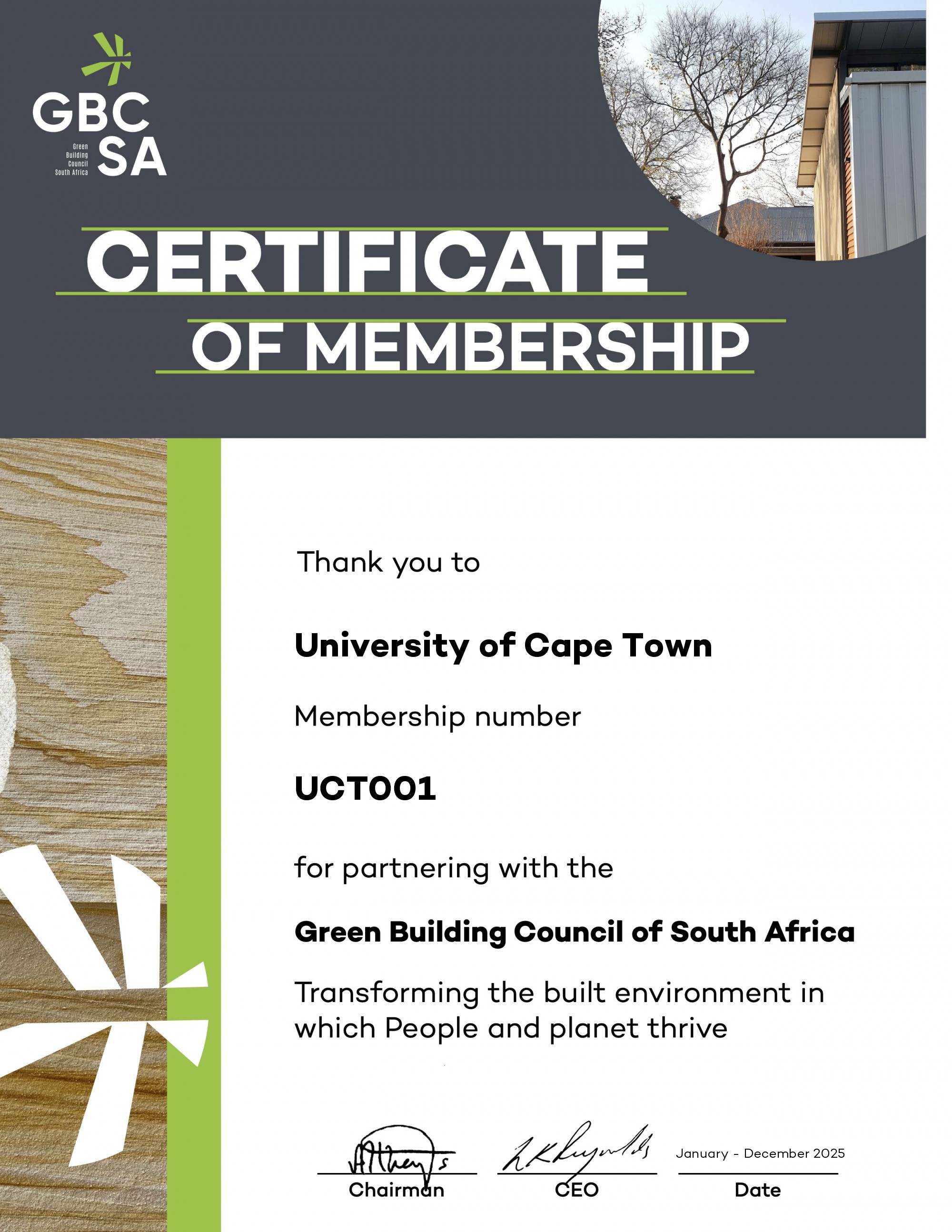 View UCT’s membership certificate.